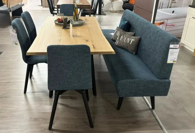 Diese exklusive Tischgruppe vereint Komfort und Stil für Ihr Esszimmer. Das Set besteht aus einer Einzelbank, vier Stühlen und einem Esstisch, die perfekt aufeinander abgestimmt sind.