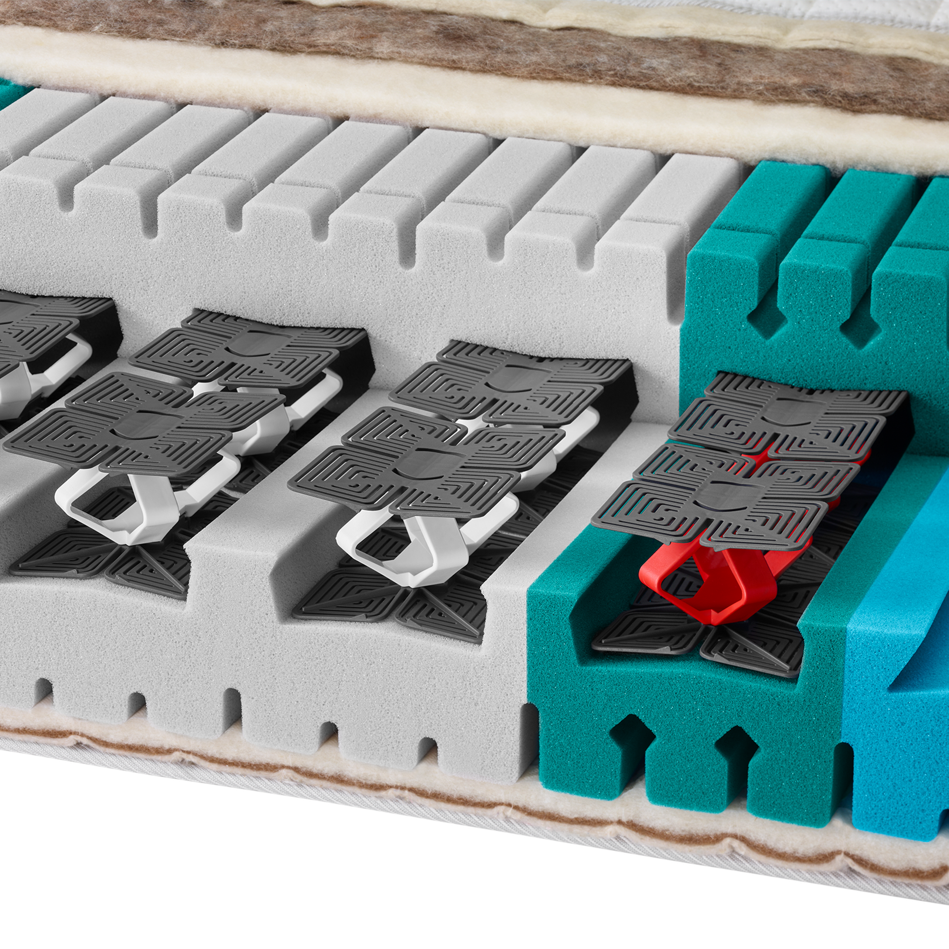 Für einen gesunden und erholsamen Schlaf ist neben der optimalen Stützung und Druckentlastung auch das Schlafklima entscheidend. Das einzigartige Clima & Support System bewirkt ein maximales Schlafklima und einen hohen Stützkomfort. Hochbauschige, reine Naturpolster-Auflagen aus der Schweiz. Perfekte Matratzenkern-Belüftung für maximale Hygiene. Wärme- und Feuchtigkeitsausgleich durch vertikales und horizontales Belüftungsprofil sowie Klima-Membranen.