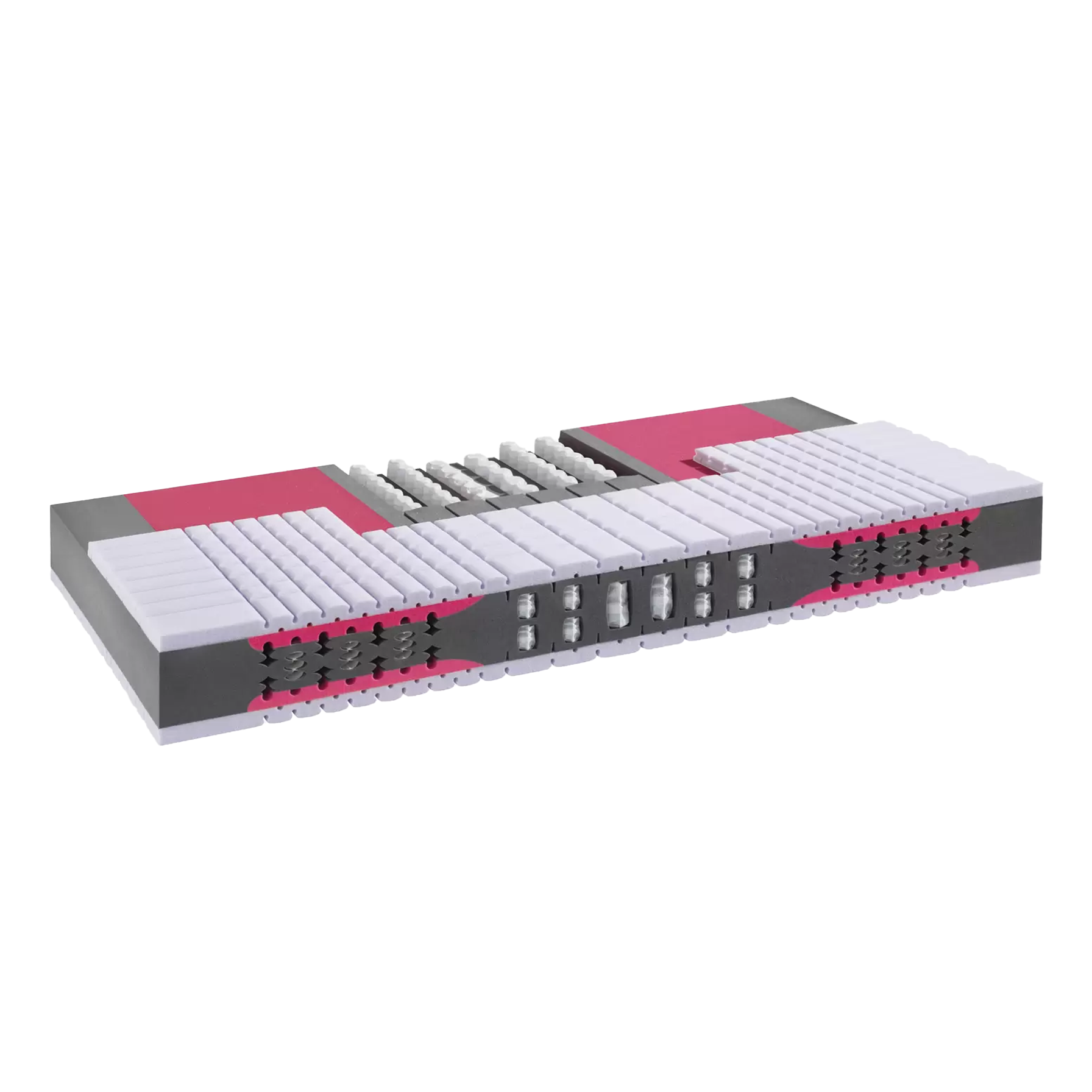 Der ergonomische Aufbau dieses Matratzenkerns nach dem ASL-Prinzip sorgt für eine harmonische Körperlagerung und lässt die Schultern und den Rücken optimal entspannen.