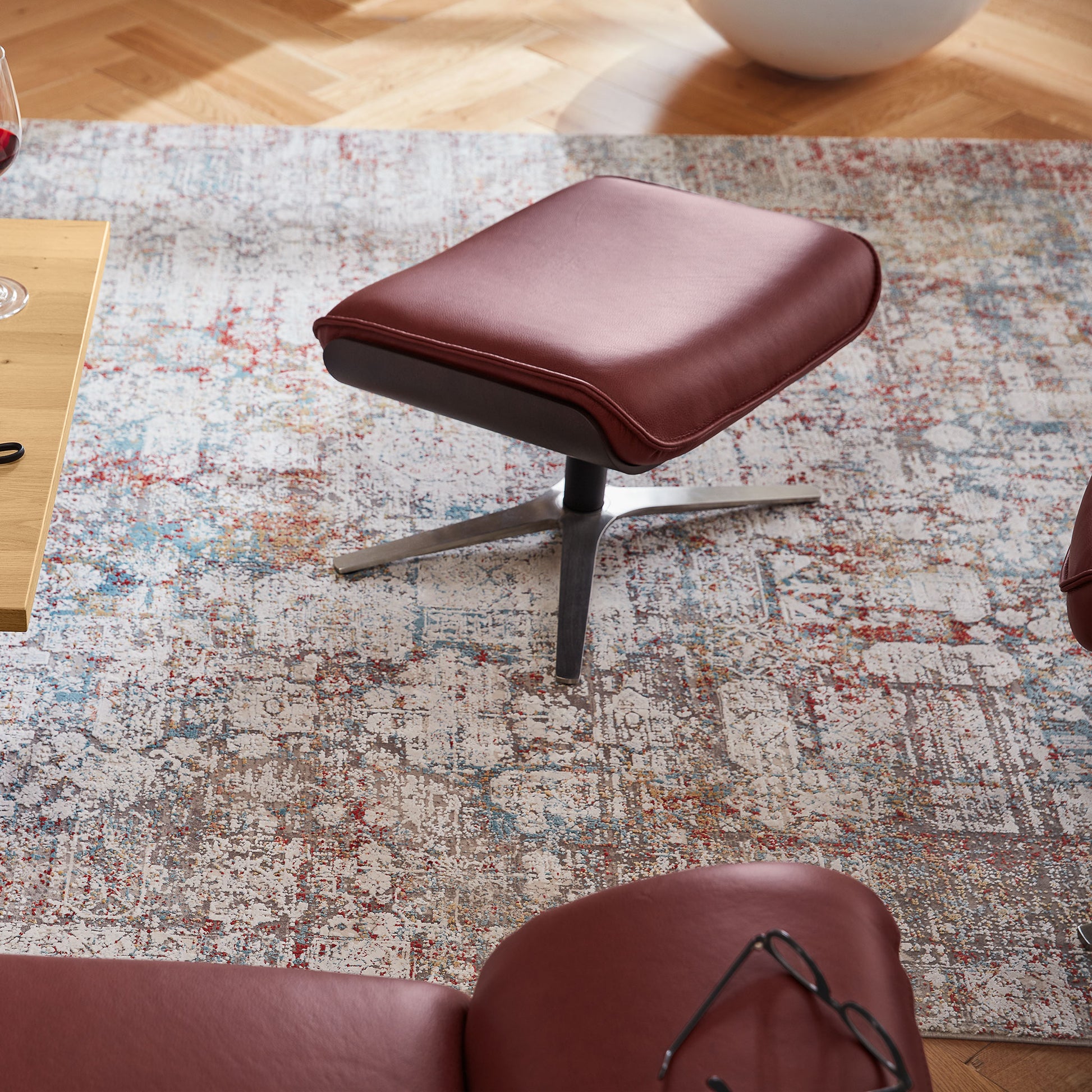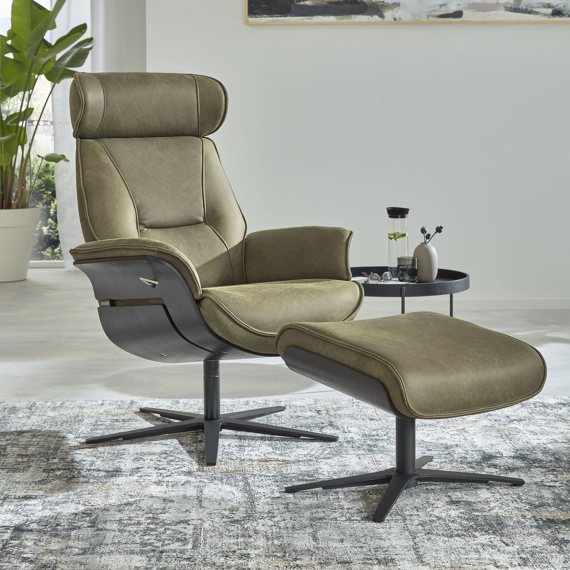 Dank ausgereifter Relaxfunktionen lässt sich die Rückenlehne stufenlos verstellen und die Kopfstütze individuell in Höhe und Neigung anpassen – für maximalen Sitz- und Liegekomfort. Der passende Hocker ergänzt den Sessel perfekt und macht das Entspannen noch komfortabler.