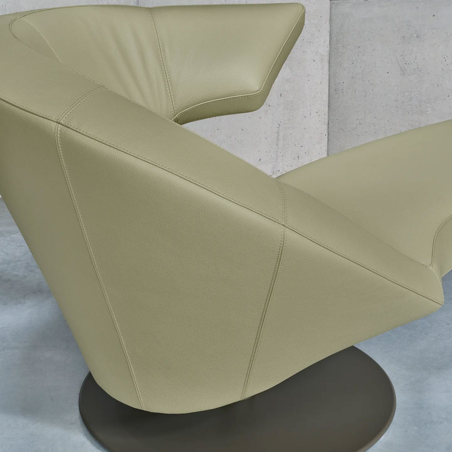 Die besondere Form, die nahtlose Verarbeitung und die einzigartige Haptik dieses Sessels lassen sich auf Bildern kaum erfassen. Erst beim Probesitzen wird klar, wie raffiniert Komfort und Design hier verschmelzen.