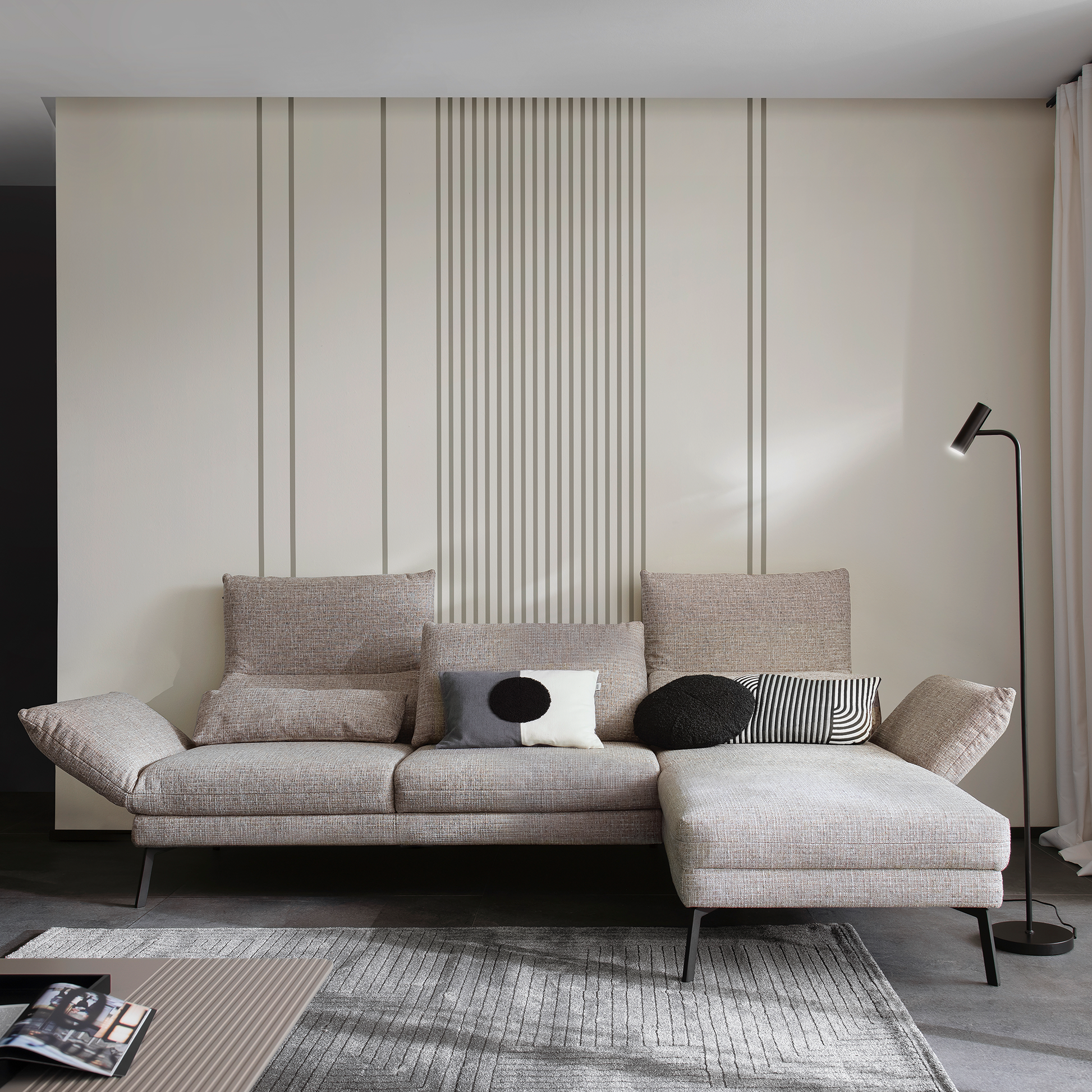 Mit dem SPIN müssen Sie sich nicht entscheiden – Sie bekommen beides in einem. Ein cleverer Dreh genügt, und die Sofaarmlehne wird zur komfortablen Beinauflage. Gleichzeitig sorgt das verstellbare Rückenkissen für die perfekte Kopfstütze und eine angenehme Sitztiefe. So finden Sie im Handumdrehen Ihre persönliche Wohlfühlposition – egal ob zum Sitzen, Liegen oder entspannten Zurücklehnen.