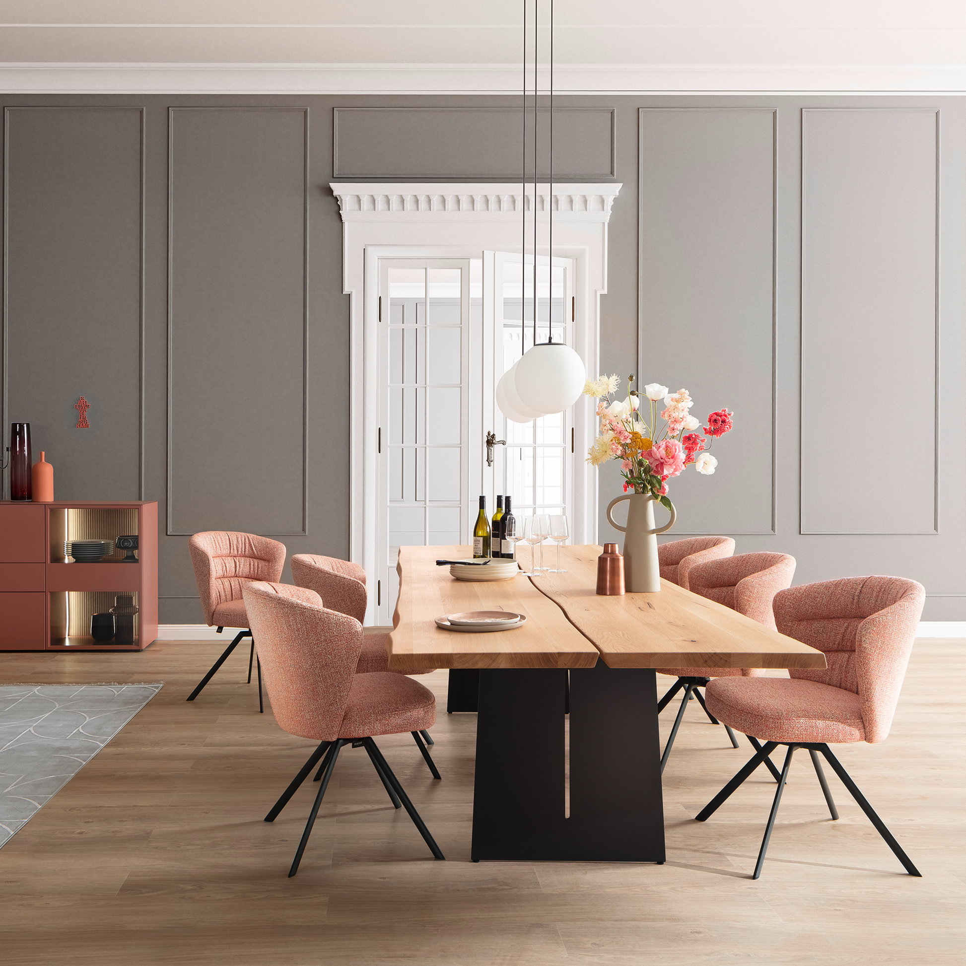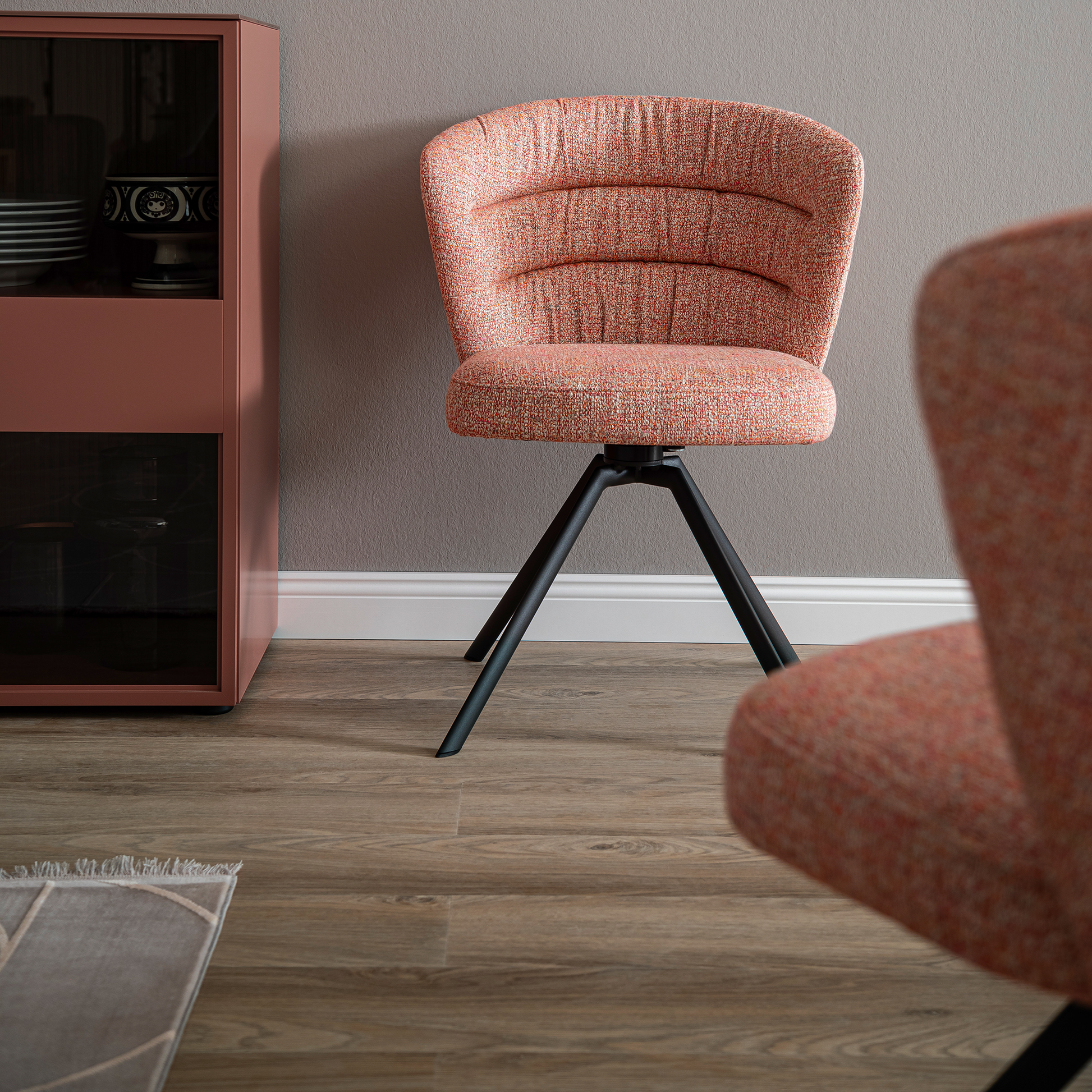 Gestalten Sie Ihren ganz persönlichen CAPRI: Wählen Sie aus fünf verschiedenen Untergestellen – von klassisch bis modern, mit oder ohne Drehfunktion, auf Wunsch sogar mit sanfter Schwingfunktion für ein besonders entspanntes Sitzgefühl. Dazu bieten wir Ihnen eine grosse Auswahl an Stoffen und edlen Ledern – für Ihren individuellen Stil.
