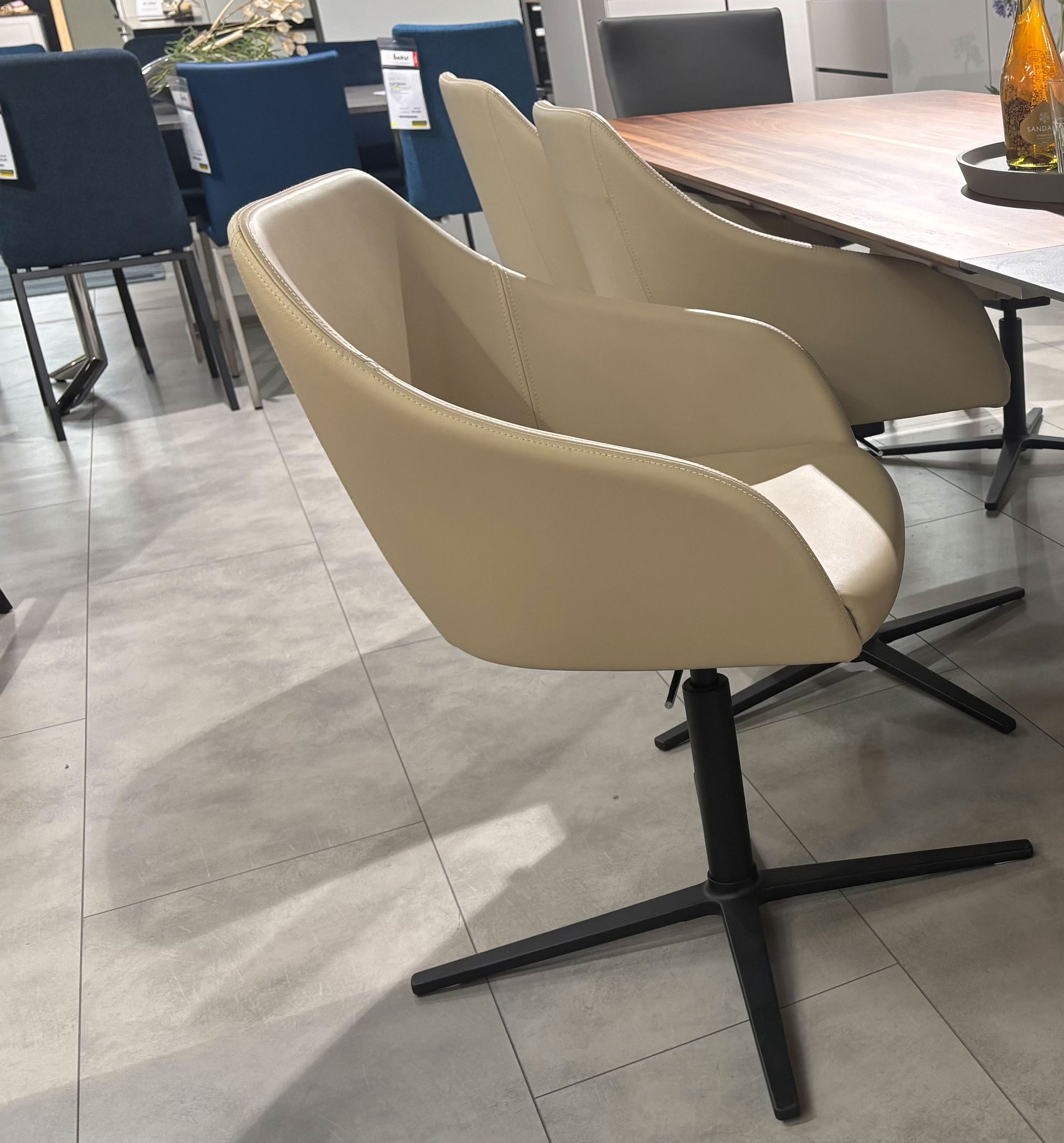 Der Stuhl LISA begeistert mit edlem Lederbezug in Beige, ergonomischem Sitzkomfort und stilvollem Aluminium-Fusskreuz in Schwarz matt. Dank beweglichem 3D-Gelenk passt er sich flexibel an Ihre Sitzhaltung an – ideal für den Esstisch, das Homeoffice oder als vielseitiger Solitär.